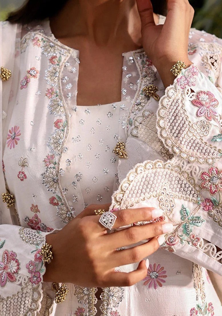 - Embroidered Sleeves and Sleeves Border White Raw Silk