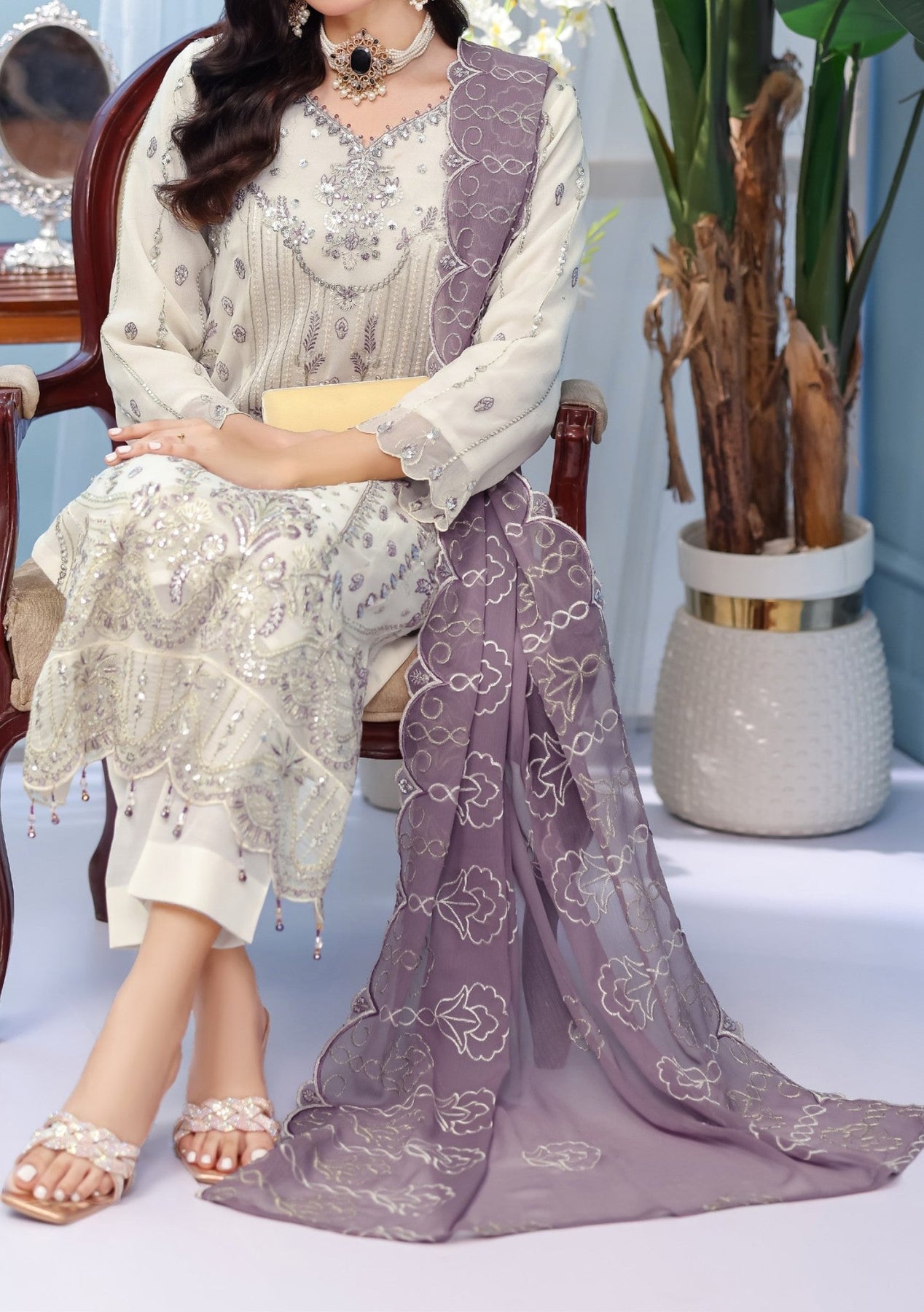 • Embroidered Chiffon Dupatta With Border Work.