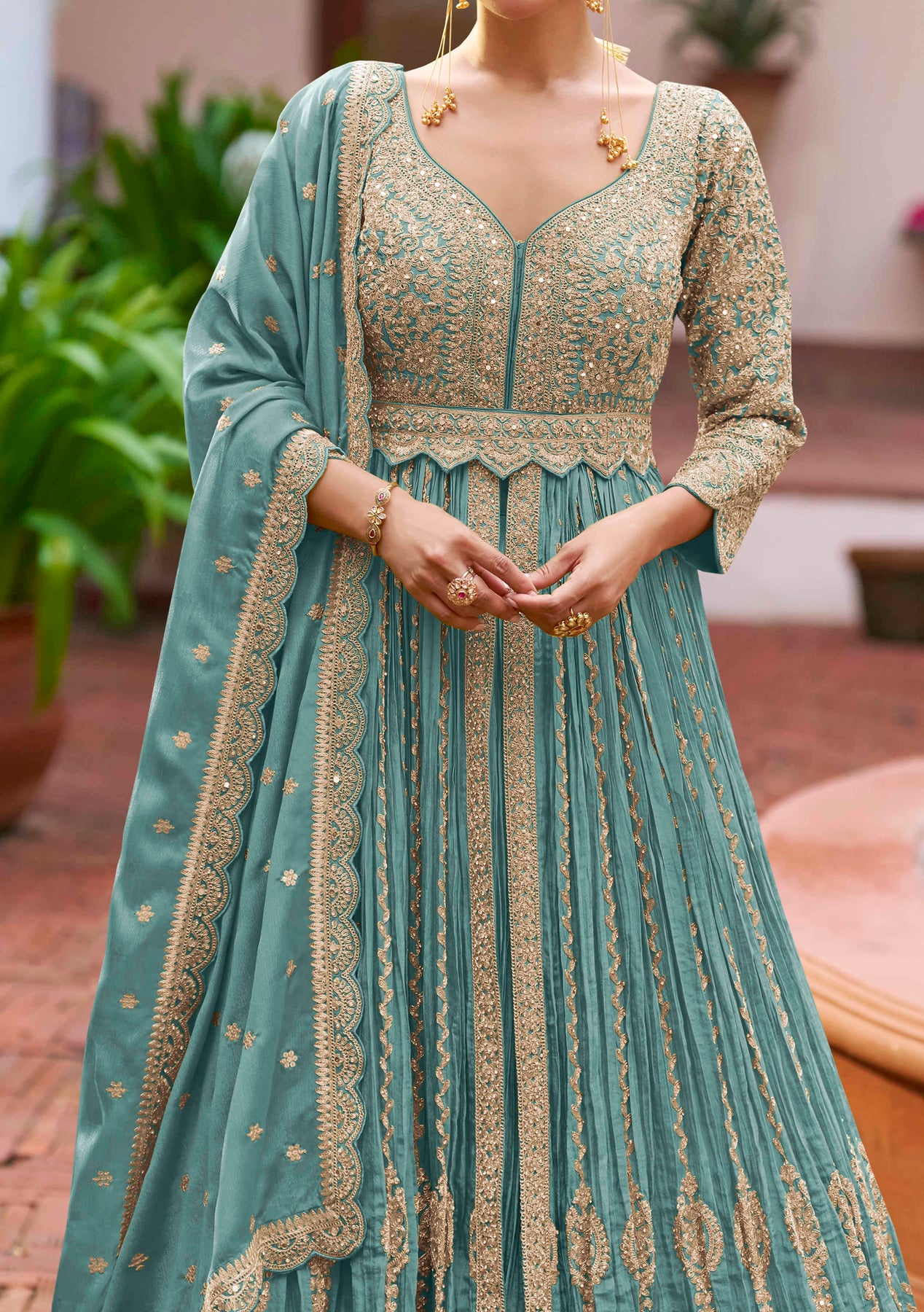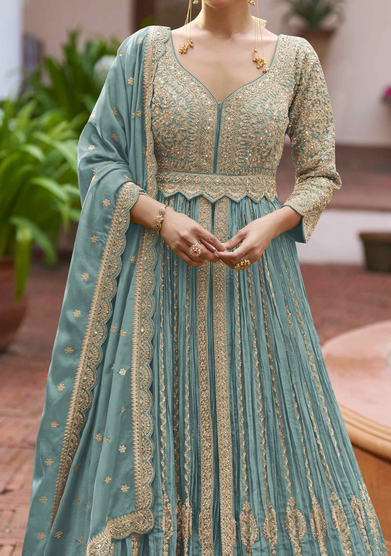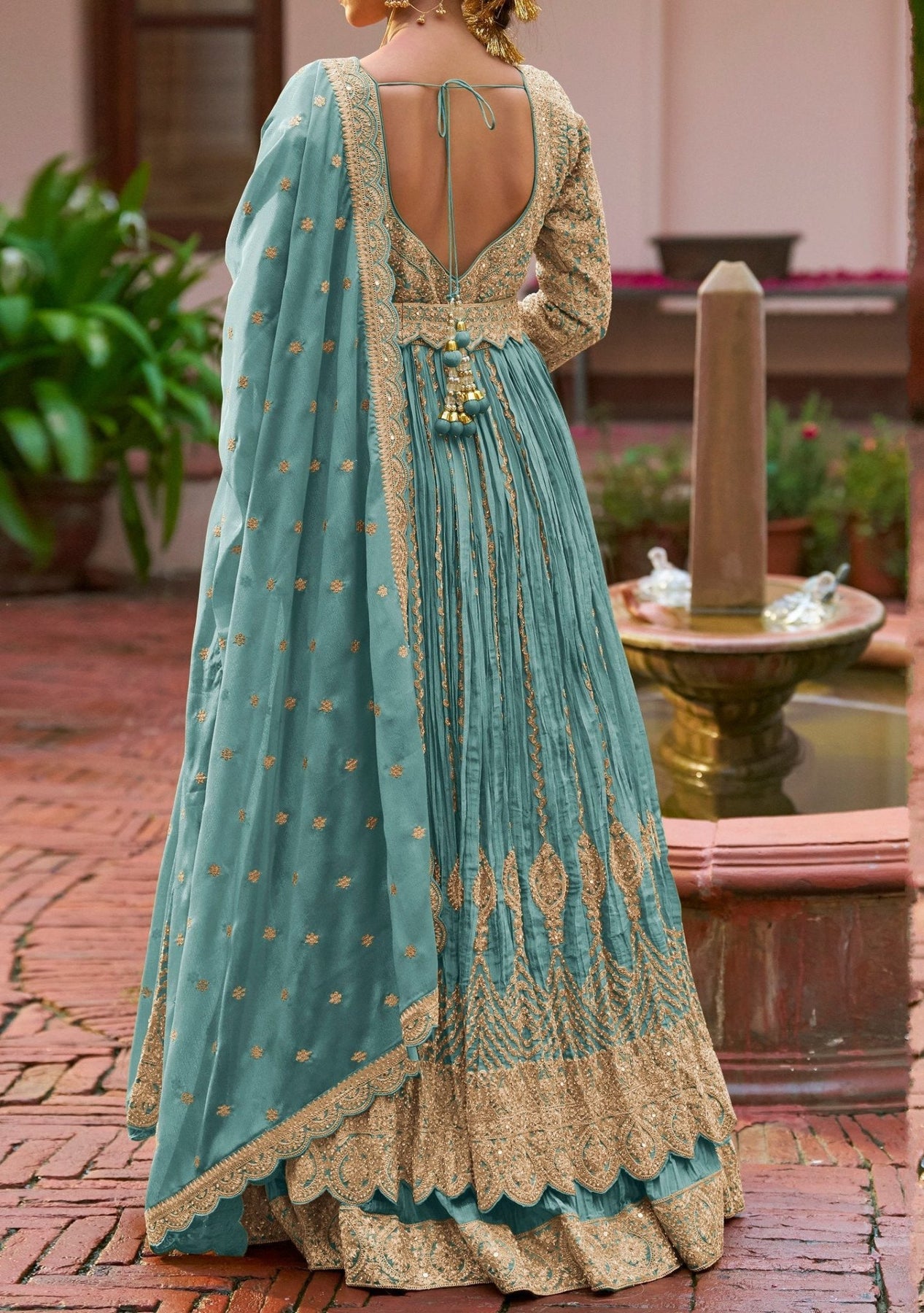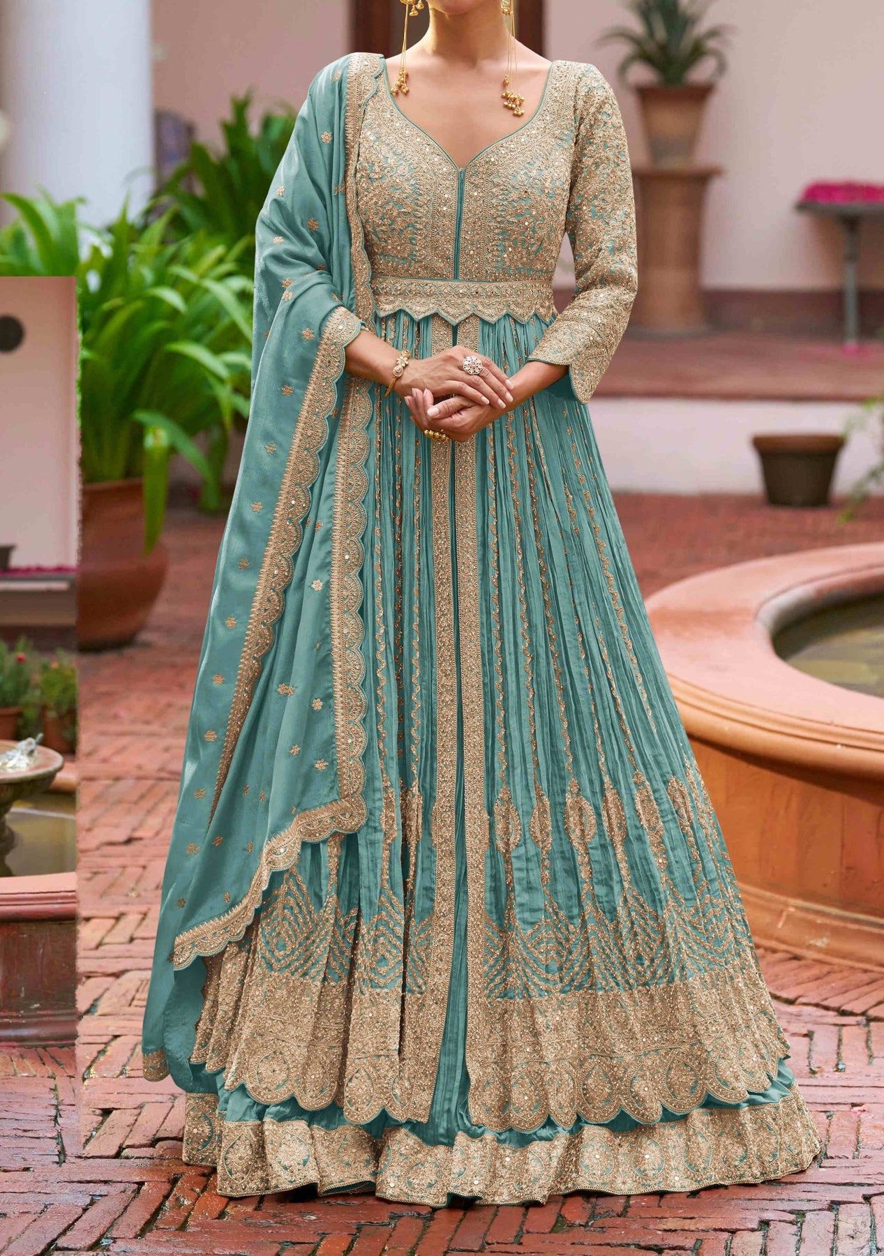 Featuring This Gorgeous party wear Anarkali Suit from the Brand Gulkayra in Real Chinon paired with a Lehenga (Skirt), and dupatta.