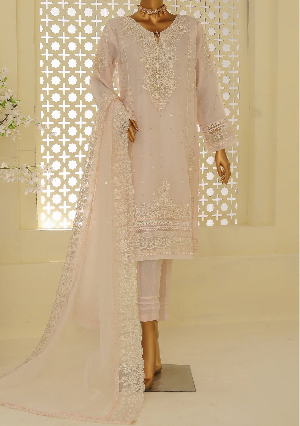- Organza Embroidered Handwork Kameez.