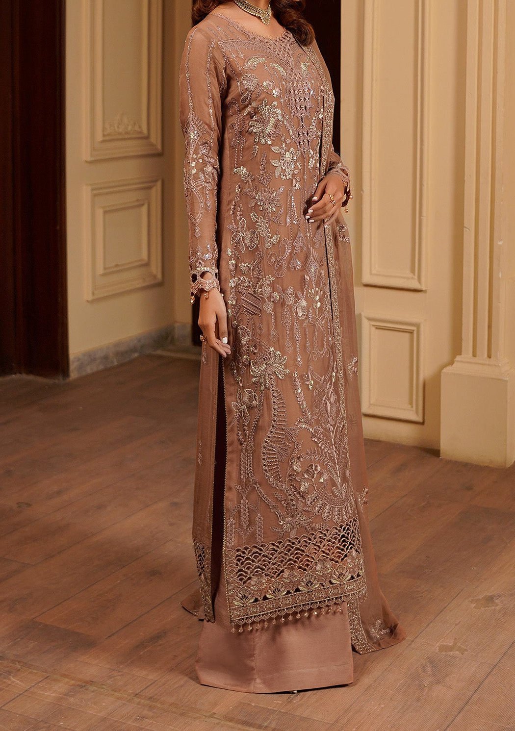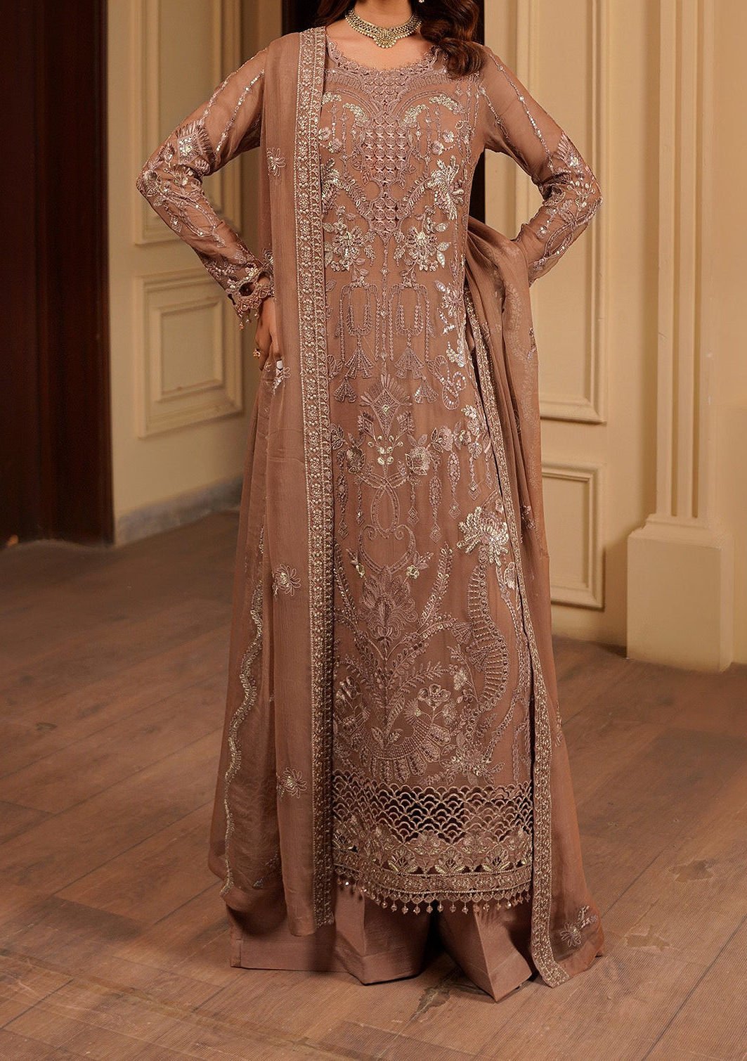 - Chiffon Embroidered Sleeves