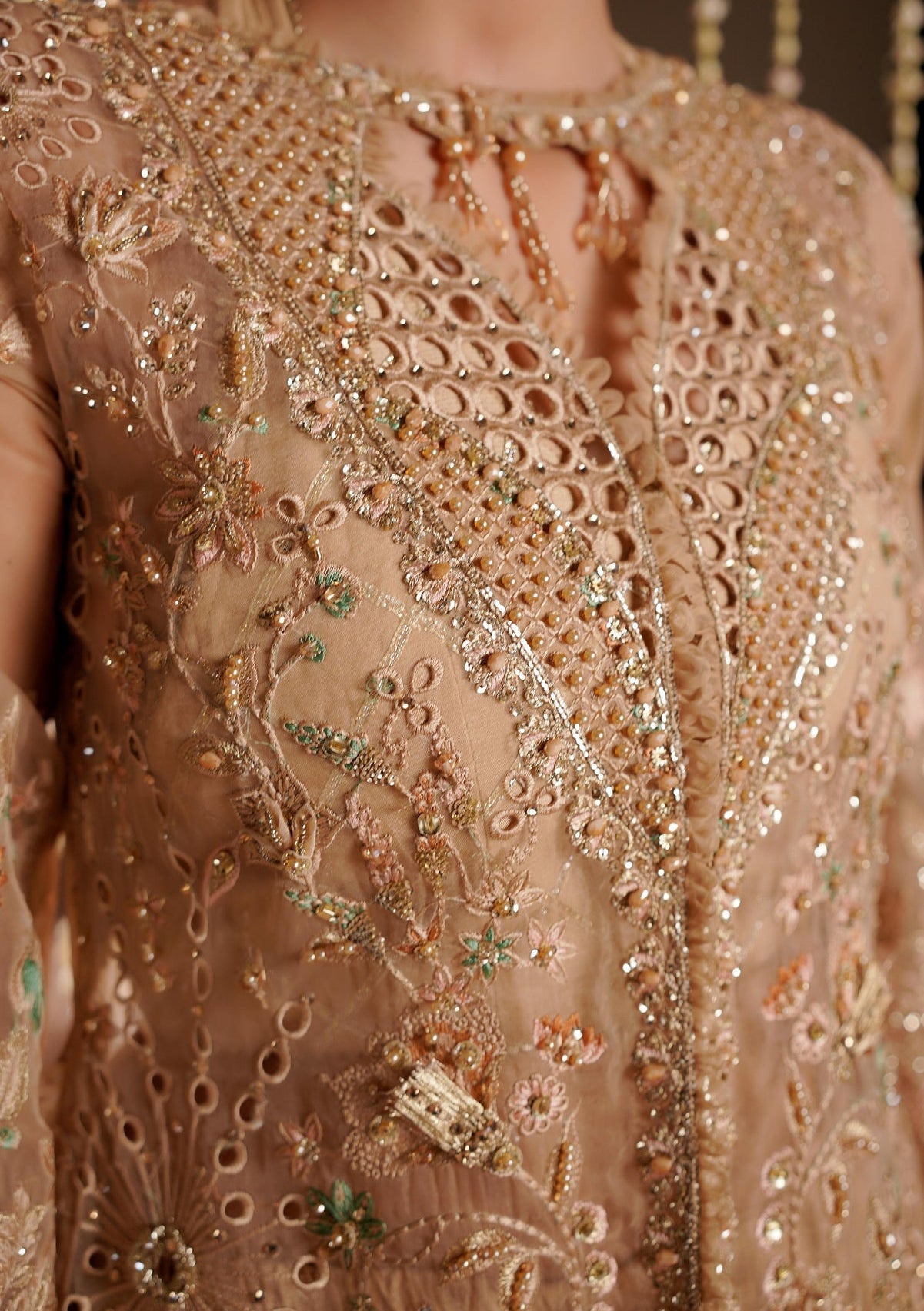 - Embroidered Front, Back, and Sleeves Organza.