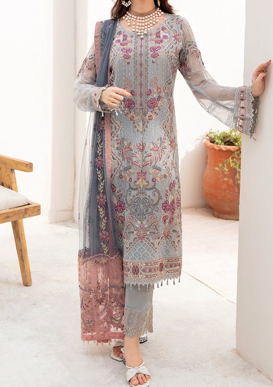 - Embroidered Net Dupatta.