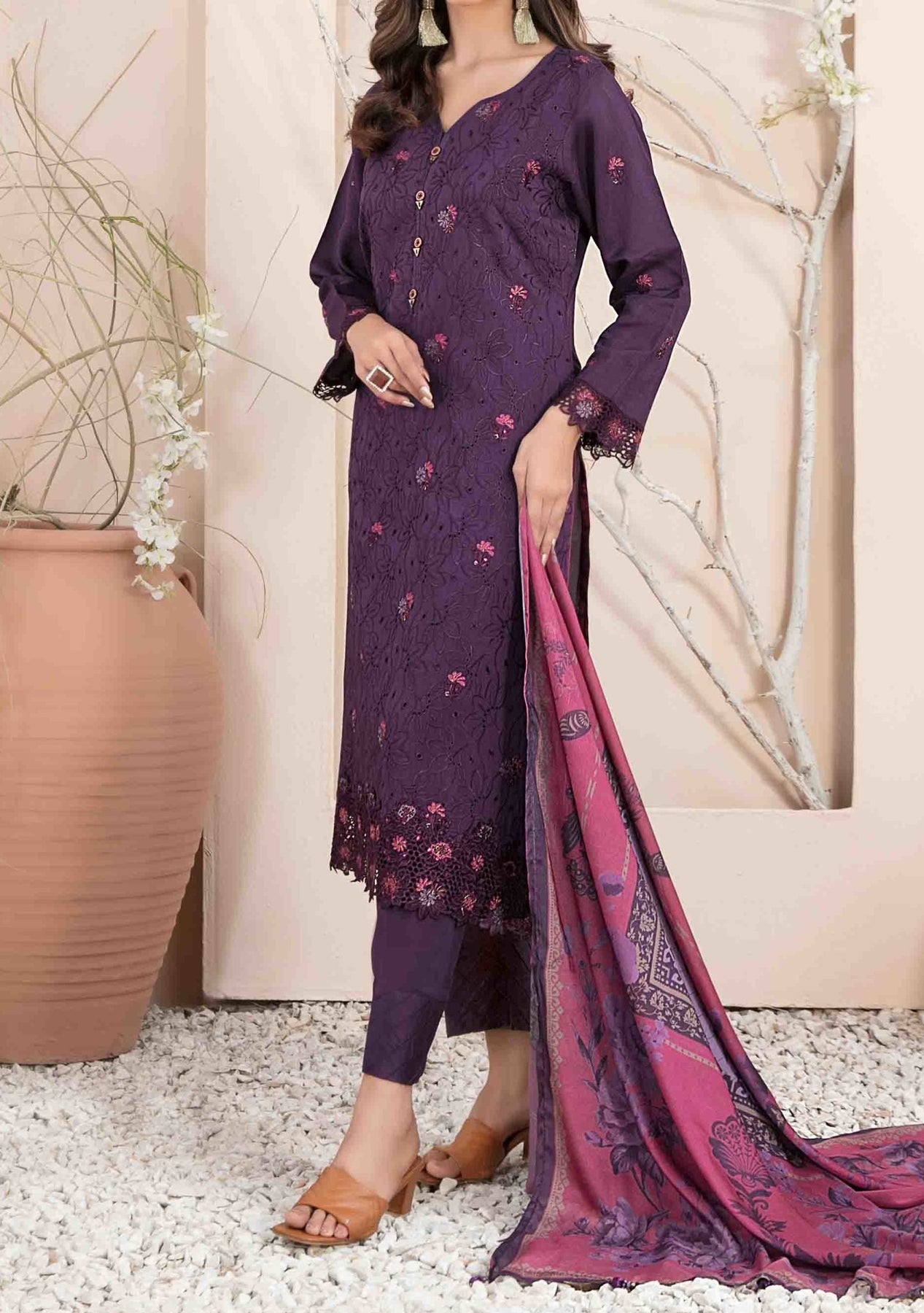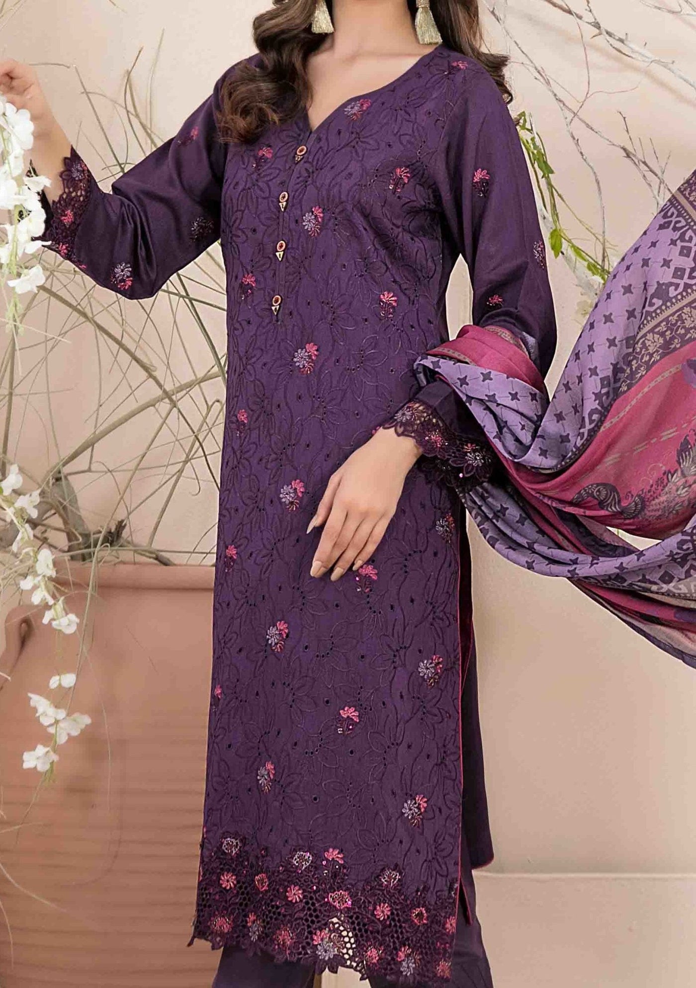 • Fabric: Schiffli Viscose Kameez, and Trouser, Chiffon Dupatta.
